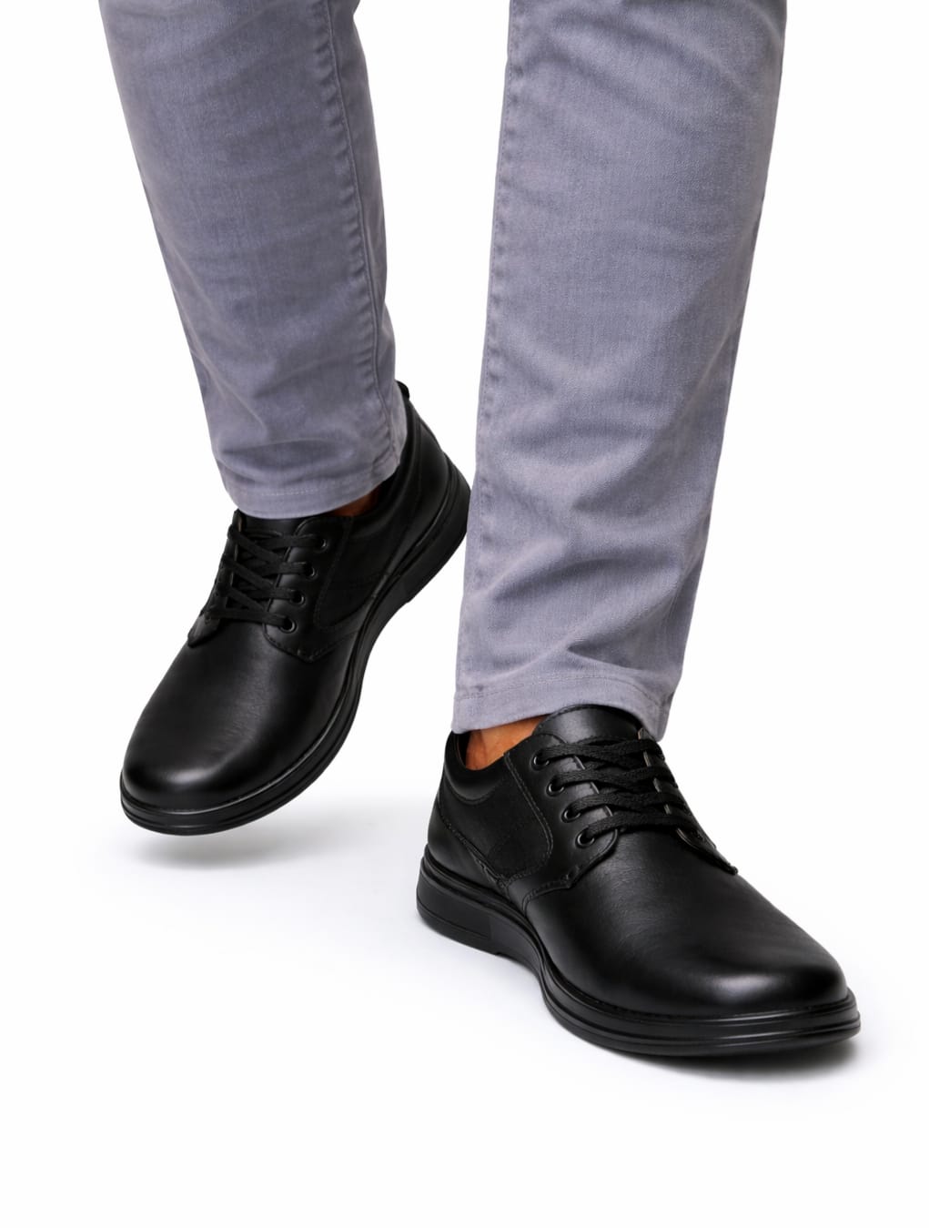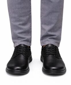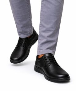 Pantofi bărbătești cu șiret, creați special pentru picior lat, oferind confort fără presiune în zona din față. Designul clasic, cu vârf rotunjit și talpă flexibilă, îi face ușori și flexibili, adaptați mișcării naturale a piciorului.